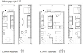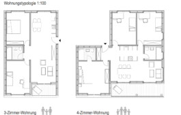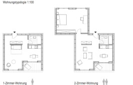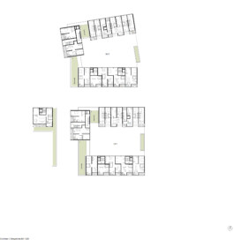 Es wird Geschosswohnungsbau mit hoher Wohnqualität angeboten. Jeder Wohnung sind Freiflächen unterschiedlicher Art zugeordnet: kleine Gärten, Terrassen, Balkone, Loggien, Dachgärten. Die vorgeschlagenen Wohnungen besitzen nutzungsneutrale Grundrisse und können durch ausreichend große Raumzuschnitte flexibel möbliert werden.