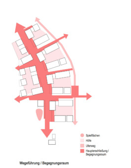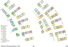 Die Vielfalt an Wohnungsgrundrissen ermöglicht eine durchmischte Bewohnerschaft. Die gemeinschaftlichen und privaten Räume zwischen den Gebäuden ermöglichen und fördern nachbarschaftliches Miteinander.