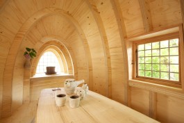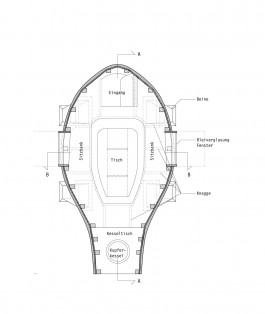 An Planung und Bau des Hauses waren unter Betreuung von Henning Wensch als Mitarbeiter des Lehrstuhls für Baukonstruktion und Baustoffkunde der TU München auch Architektur-Studierende beteiligt. Inspiration für die Gestaltung lieferten Brueghels Gemälde »Schlaraffenland« in der Alten Pinakothek und die Autobegeisterung Franz von Stucks; und weil Europäer mit der Teezeremonie nicht so vertraut sind, wurde aus dem Teehaus das auf Rädern fahrende Walking Café.
