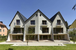 Das Quartier in München Harlaching wird von kleinen Einfamilienhäusern aus der ersten Hälfte des 20. Jahrhunderts geprägt. Für das Bauvorhaben wurden zwei benachbarte Grundstücke zusammengelegt und die beiden bestehenden Walmdachhäuser wurden durch eine neue verdichtete Bebauung ersetzt. Die Straßenfassade ist gegliedert in zwei Eckhäuser und einen dazwischengeschobenen Baukörper, der zurückversetzt angeordnet ist.