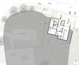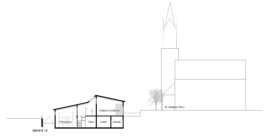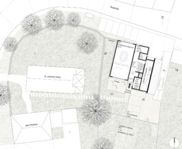 In der Gemeinde Emetzheim im mittelfränkischen Landkreis Weißenburg-Gunzenhausen wird ein Dorfgemeinschaftshaus geplant. Dieses enthält sowohl Räumlichkeiten für die freiwillige Feuerwehr als auch einen Dorfgemeinschaftsraum, der allen Gemeindemitgliedern zur Verfügung steht. Das neue Gebäude ist städtebaulich und topografisch im östlich an die historische Kirchmauer angrenzenden Pfarrgarten gut integriert. Es nutzt geschickt den bestehenden Geländeverlauf um Zugänge sowohl vom Niveau der Burgstraße als auch von der Kirchenseite zu schaffen. Die niedrige Trauf- und Firsthöhe erzeugt einen respektvollen Abstand zur St. Johannes Kirche.