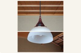 - In Akasaka gab es die Pendelleuchte in beiden Tatami-Zimmern im japanischen Stil, eines mit 8 Matten und eines mit 10 Matten. Die Troddeln fallen schon fast auseinander, nicht wahr. ...Es ist quasi eine Antiquität.
