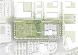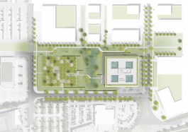 des Landratsamtes besetzt als Auftakt zum neuen Bebauungsgebiet die südöstliche Ecke des Grundstücks mit starker Signalwirkung zur Hauptzufahrt am Kreisel Penzinger Feld / Münchener Straße. Es spannt ein Feld zur bestehenden Bebauung im Westen auf und dient als Pionier und Leuchtturm für das zukünftige Quartier im Nordosten. Der Baukörper ist bewusst kompakt gehalten und steht für ein modernes und nachhaltiges Landratsamt. Die Gebäudestruktur basiert auf einem nutzungsneutralen Raster, das eine hohe Flexibilität erlaubt und allen Anforderungen, so auch dem Parken, gerecht wird. Flächeneffizient und ressourcenschonend bleibt eine größtmögliche Fläche für die Außenanlagen beziehungsweise für die zukünftigen Entwicklungen erhalten.