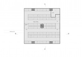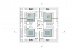 Das hohe Erdgeschoss beherbergt auf der Südseite neben dem Foyer auch den Sitzungssaal, sowie die Zulassungsstelle mit direktem Zugang von außen und die Kantine mit anschließender Außenterrasse. In der Nordhälfte wird die Geschosshöhe für zwei natürlich belüftete Parkebenen genutzt. Die weiteren Tiefgaragenebenen sind ebenfalls flächeneffizient im Split-Level-Prinzip organisiert. Die drei Obergeschosse können nach Bedarf in einzelne Sachgebiete sowie Verwaltungseinheiten unterteilt werden.