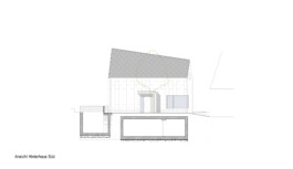 Das Vordergebäude wird aus kontextuellen Gründen als verputzter Massivbau ausgeführt. Somit integriert sich das neue Gebäude harmonisch in das Straßenbild. Das Tiny House im Hof mit seiner eigenen formalen Ausbildung erhält eine Kork-Fassade. Die Dächer beider Gebäude werden aus energetischen Gründen vollflächig mit Photovoltaik belegt.