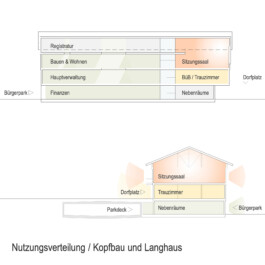 Ressourcenschonendes Bauen wird für das neue Rathaus sowohl technisch als auch strukturell und sozial umgesetzt. Die Hybridkonstruktion aus Recyclingbeton und Holzrahmenbau vermittelt optimal zwischen komplexen Anforderungen und vermeidet zukünftige Entsorgungskosten von Bausondermüll. Traditionelle und zeitgenössische Technik werden hier umsichtig eingesetzt und nachhaltig verbunden.