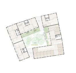 Die Hauptgebäudeeingänge des Ensembles befinden sich an der Haager Straße und der Kordonhausgasse. Zusätzlich gibt es direkte Eingänge in die Erdgeschosseinheiten über den Hofraum. Fünf gezielt gesetzte Kerne erschließen die Gebäude vollständig barrierefrei und ermöglichen unterschiedliche Aufteilungen der Nutzungseinheiten in den Gebäuden. Somit wird die langfristige Nutzbarkeit gesichert.