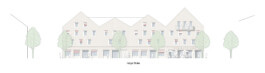Auf den städtebaulich besonders relevanten und exponierten Dächern zur Haager Straße bzw. in Richtung Kernstadt Erding wird bewusst auf die Anordnung von Photovoltaik verzichtet. Eine Biberschwanzdeckung sorgt für die Integration und die Fortschreibung der vorhandenen Oberflächen und Materialien. Als Kompensation werden die untergeordneten westlichen Dächer vollständig mit Indach-PV (W-OOrientierung) versehen. Eine Süd-besonnte Biodiversitätsdachfläche im Hof stärkt die Artenvielfalt in der urbanen Umgebung.
