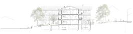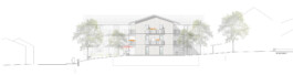 Im Weiler Sulzberg-Ried wird auf einem südexponierten Hanggrundstück in zentraler Lage gemeinschaftliches, nachhaltiges Wohnen geplant. Der Baukörper fügt sich in Maßstab, Kubatur und Erscheinung in die Abfolge der existierenden Hofstellen ein. Das gewachsene dörfliche Gefüge wird fortgeführt und gestärkt. Das Erscheinungsbild der Gebäude mit Holzfassaden und Satteldach stellt sich bewusst in die örtliche Gestaltungstradition, ist aber durch Vorfertigung und präzise Detailierung dezidiert zeitgenössisch.