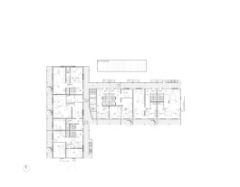Auf der Ost- bzw. Nordseite des Gebäudes befinden sich großzügige Laubengänge, die alle Wohneinheiten erschließen. Die Laubengänge reduzieren die Anzahl der Treppen und erlauben die effiziente Ausbildung der erforderlichen Rettungswege. Außerdem wird mit nur einem Aufzug die vollständige Barrierefreiheit hergestellt. Durch die Lage außerhalb der beheizten Hüllfläche reduzieren die Laubengänge Erstellungs- und Unterhaltskosten.