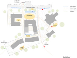 Der neue Quartiersplatz liegt als Auftakt und zukünftige Mitte der neuen Überbauungen an der Etterschlager Straße.