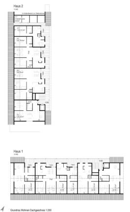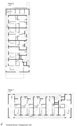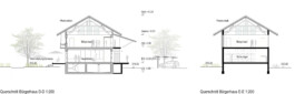 Für das sich im stärker hochwassergefährdeten Bereich befindliche Haus 2 wird auf Unterkellerung verzichtet. Auf einer Stahlbetonplatte steht ein Gebäude in vorgefertigter Holzbauweise.