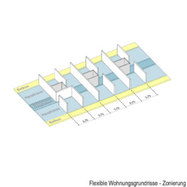 Es wird Geschosswohnungsbau mit hoher Wohnqualität angeboten. Die Wohnungen besitzen nutzungsneutrale Grundrisse und können durch ausreichend große Raumzuschnitte flexibel möbliert werden. Die Normen für Barrierefreiheit innerhalb der Wohnungen werden erfüllt.