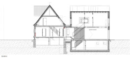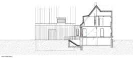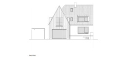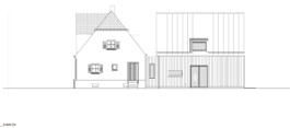 Geplant werden der Umbau und die Modernisierung einer Doppelhaushälfte Baujahr 1926 und ein gartenseitiger Anbau in hohem Standard. Die beiden Gebäudeteile werden durch einen Koppelbau im Erd- und Untergeschoss verbunden.