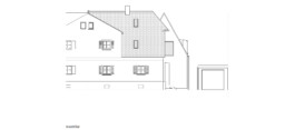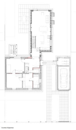 Sowohl der Bestand als auch der Anbau besitzen ein Untergeschoss, Erdgeschoss und Dachgeschoss. Das Gebäude besteht aus einer Nutzungseinheit und hat die Gebäudeklasse II. Die Garage bildet einen getrennten Baukörper als Grenzbebauung entlang der östlichen Grundstücksgrenze. Dem Anbau angelagert befinden sich im Nordwesten eine Terrasse.