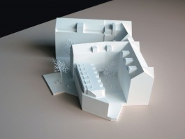 Townhouses: Der Materialkanon aus Sichtbeton und warmen Metalltönen setzt sich bei den hofseitigen Townhouses fort. Zur Verdeutlichung der Parzellierung und vertikalen Organisation werden die „Häuser“ durch helle Trennschotten aus Sichtbeton betont.
