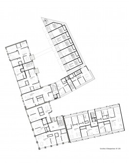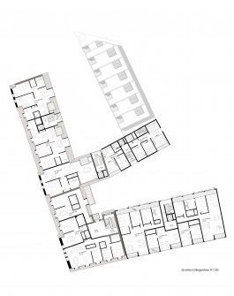 Größe: 13.300 m2 BGF (6.500 m2 WF, 2.200 m2 Gewerbefläche)